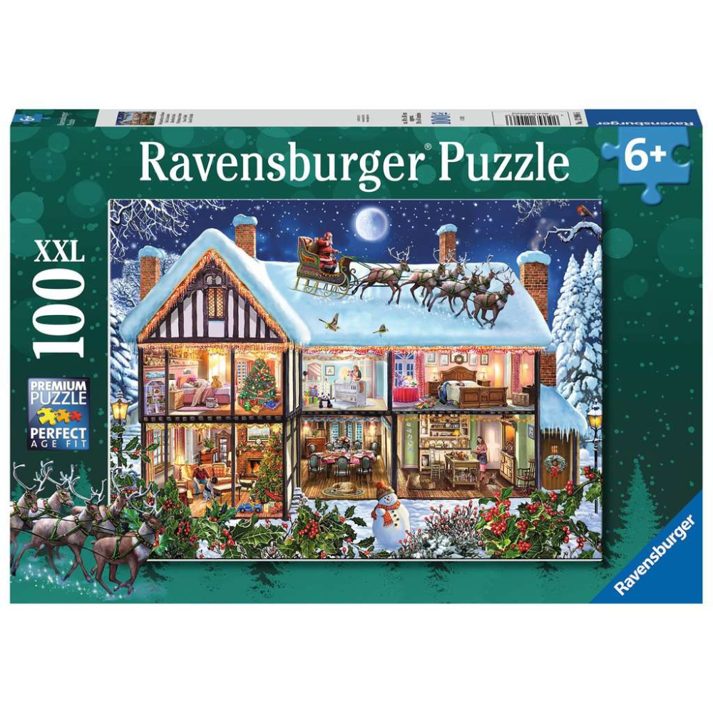 Imagine taking the front off a busy family home on Christmas Eve - this is what you might see! A family preparing for the big day with children going to bed, cooking preparations being made, the dining table is ready. And on the rooftop, there's a very special visitor, as Santa drops by!