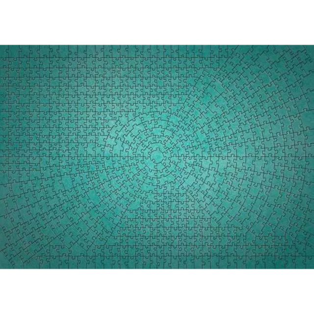 Featuring 736 intricately cut pieces, each with a unique shape and arranged in a spiral pattern, this puzzle demands patience, logic, and a keen eye. The striking mint-green metallic surface adds an extra layer of difficulty by removing all colour clues, making every piece placement a test of spatial awareness.