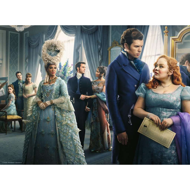 This 500-piece puzzle brings to life the enchanting world of "Bridgerton," featuring a captivating scene that encapsulates the essence of the series. With each section completed, the puzzle transforms into a vivid portrayal of Regency-era London—a world where society's rules and desires intertwine, and where the lady's connection with her loyal dog and the gentleman's enigmatic presence speak volumes about their respective journeys. As the final pieces settle into place, the puzzle becomes a window into the captivating world of "Bridgerton," celebrating its characters, and their stories.