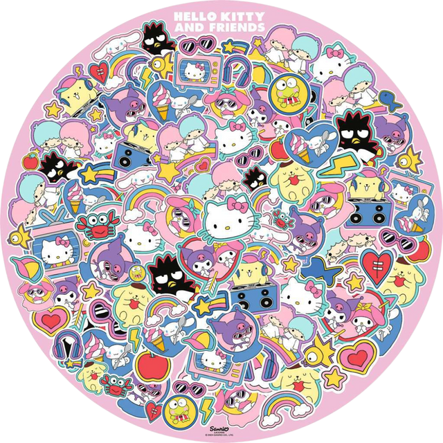Join Hello Kitty and her friends in this delightful 500-piece circular jigsaw puzzle that brings a touch of charm and whimsy to your puzzling experience. This vibrant and colourful puzzle features Hello Kitty and all her friends, surrounded by a playful array of hearts, stars, and rainbows, all arranged in a unique circular design. It's the perfect way to add a little bit of Hello Kitty magic to your day!