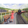 This charming puzzle captures a moment of timeless elegance as a lady dressed in a vibrant red ensemble, accompanied by her faithful dog and trusty basket, waves to halt an approaching train at the station. So, embark on this nostalgic puzzle adventure and relive the timeless charm.