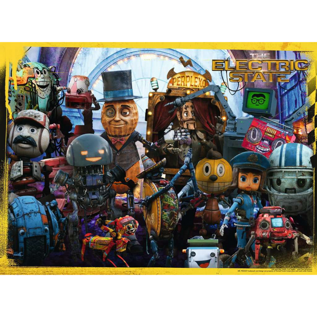 The puzzle captures a scene of mysterious characters. As you piece it together, uncover the poignant details of a world dominated by abandoned technology and robots. Once completed, the puzzle forms a vivid and thought-provoking image—a tribute to The Electric State's unique blend of storytelling and visual art.
