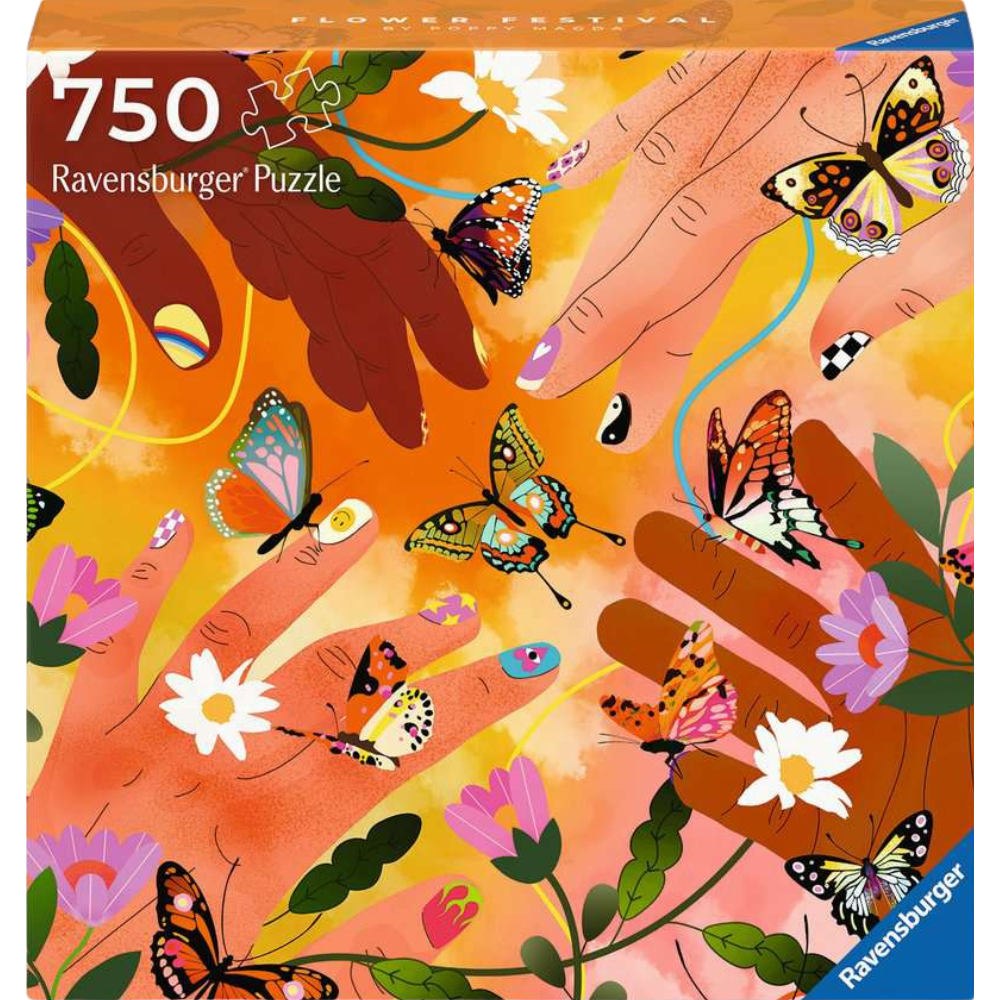 Celebrate the vibrant beauty of nature with our 750 piece puzzle, "Flower Festival." This enchanting puzzle captures the essence of a whimsical festival where delicate hands are entwined with a tapestry of butterflies and flowers, creating a mesmerising and harmonious scene. Each piece invites you to explore the intricate details and vivid colours of this joyful celebration of life and nature.