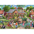 This captivating puzzle captures a tranquil village scene brimming with life and activity. Amidst the rolling green hills, you’ll find cozy cottages with thatched roofs, a quaint stone bridge arching over a gentle river, and friendly villagers going about their day. A young girl is sailing her toy boat on the river. The village buzzes with a warm sense of community as people walk along the paths, engage in cheerful conversation, and enjoy the simple pleasures of village life.