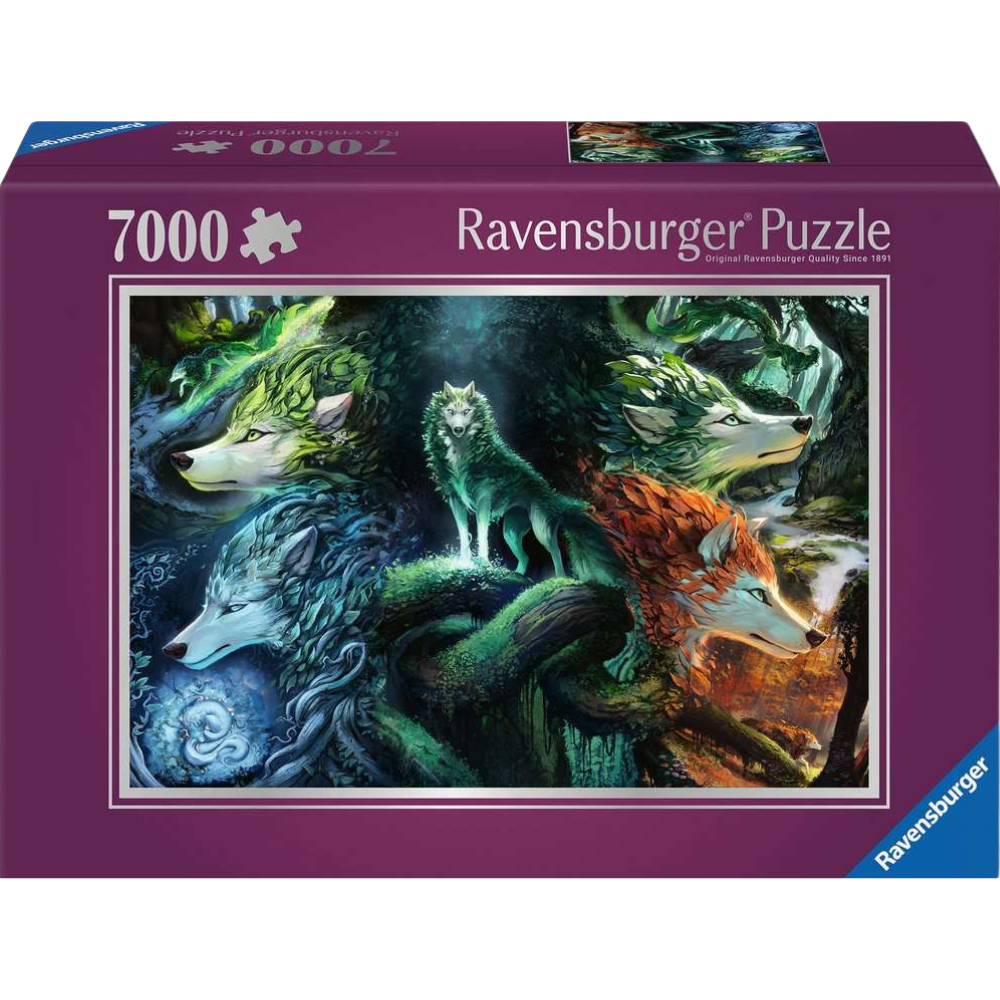 With 7000 meticulously designed pieces, this puzzle offers an immersive experience for those seeking a challenge and a serene escape, where vibrant wolves roam freely under the canopy of a mystical forest. Every piece fits together to reveal an intricate, colour-rich tapestry of nature's beauty, with stunning wolves blending seamlessly into their lush surroundings. From the deep greens of the forest to the striking contrasts of the wolves' coats, each puzzle piece brings a new element to life. Unlock the whispers of the forest today.