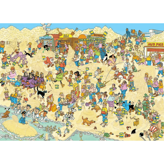 Sand Sculptures is a comical and detailed 1000-piece jigsaw puzzle which depicts a chaotic scene where you see the unexpected and where nothing goes according to plan. As with all of Van Haasteren’s illustrations, you are sure to find this puzzle extremely enjoyable while laughing at all of the individual illustration.