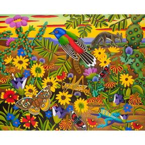 Billy Hassell’s vivid paintings are studies in stylized naturalism, rooted in a deep sense of place. An artist and conservationist since childhood, he roamed the creeks and uncultivated areas around Dallas and began his life’s work by drawing the lizards and other creatures he carried home in his pockets. In the Caprock Country, pictured on this 1,000-piece jigsaw puzzle, brings you in close to the wilds of West Texas.