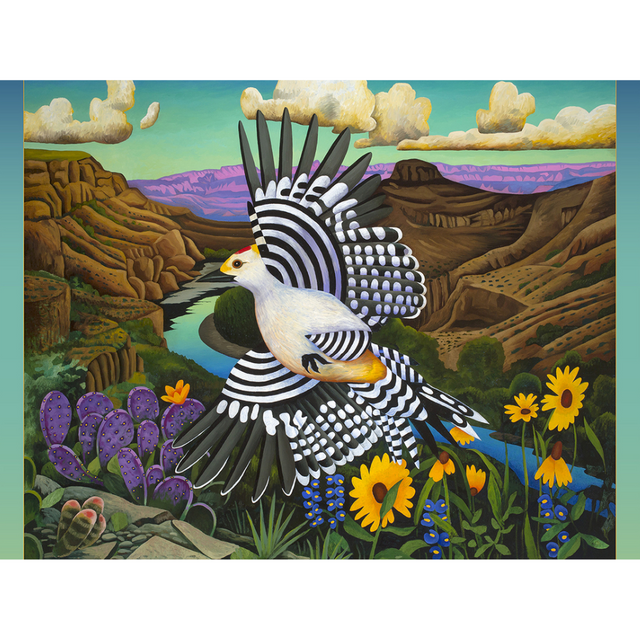 High above the expansive canyon, the golden-fronted woodpecker’s dramatic patterning takes centre stage amidst cactus flowers, black-eyed Susans, and Texas bluebonnets. “Nature has fed my soul for my entire life,” says Billy Hassell, who since schoolboy days has been drawn to commemorate the wild places near his Texas home. From a bird’s-eye viewpoint, his bold and beautiful Crossing the Rio Grande, reproduced on this 500-piece jigsaw puzzle, will transport you to the peaceful plateaus in the distance.