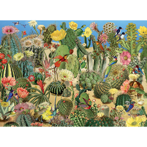 Desert birds flap about these sandy succulents! The cactus garden is open for feather friends in this 1000 piece puzzle!