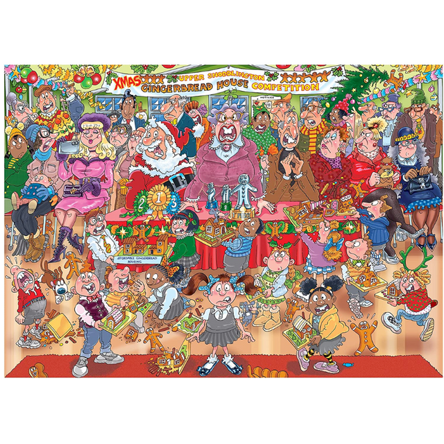 Includes a FREE 1000 Piece jigsaw puzzle inside! The eagerly awaited Wasgij Christmas 18 is here! This humorous holiday themed Wasgij will certainly amuse you. It’s time for the gingerbread house competition at the Wasgij village Christmas fare, everyone has turned up for the occasion and Santa is one of the judges, but what has caused the crowd to gasp in shock? Piece together this fun jigsaw to discover their shocking surprise.