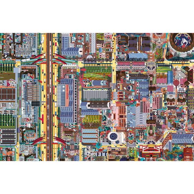 Look left and right before crossing! There are some fun surprises to uncover in this super-detailed and super-challenging city map jigsaw puzzle, which is home to trucks, trains, people and cars.