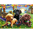 It's been a busy day for these three adorable Labrador pups, and now they need to take a little rest from the play and excitement. Is their friend going to have a snooze in the picnic basket - or is he just going to eat the rest of the picnic?