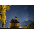 Features an atmospheric photographic image, brought to you by the photographer Christian Ringer, capturing a beautifully lit night-time scene of a solitary church under a starry sky.