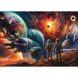 Embark on an intergalactic journey with the Cosmic Colours Puzzle! This spectacular 1000-piece puzzle by Michele Farella captures a vivid and awe-inspiring view of outer space, featuring astronauts gazing at a star-filled expanse. A massive spaceship soars through a vibrant celestial backdrop of swirling galaxies, glowing planets, and radiant nebulas in hues of orange, blue, and red.