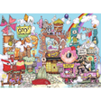 The scene is a delightful collage of buildings, colourful storefronts, and unique characters. Quirky details abound, with funky street art, creating a sense of joy and energy that captures the essence of urban life. As you piece together this fun and chaotic street scene, you'll be drawn into a world brimming with charm. Perfect for puzzle enthusiasts who enjoy lively and colourful illustrations, this puzzle promises hours of entertaining challenge and a joyful escape into a world of creativity.
