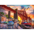 The Forth Bridge is a Scottish icon, and was the world's first major steel structure. This atmospheric view captures the powerful red construction in the early evening, its famous cantilever arches reaching out across the Firth of Forth. Aside from the bridge itself, our scene depicts vintage cars gathering for a local "scramble", fishing boats awaiting their next trip out and a steam engine powering its way across the bridge after a day trip.
