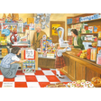 Do you remember when the corner shop was a common sight, and you could pop in to buy anything from a loaf of bread to pots and pans? This young customer has called in with her Mum, who is deciding which cans she needs to top up her pantry whilst the grocer cuts her some ham.