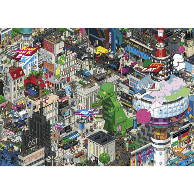 The Pixorama series of puzzles include a seek and find game. Featuring popular cities with well-known sights and characters. Designed by eBoy - an artist community with international cult status.