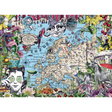A vintage map blends with quirky circus illustrations in this fun design. A lovely World Map Puzzle.