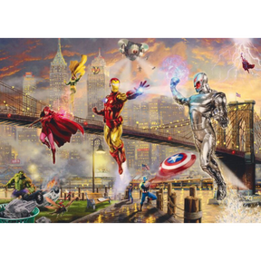 Join the battle for justice with the Marvel Avengers: Iron Man vs. Ultron Puzzle! This dynamic 1000-piece puzzle features Iron Man in an epic face-off against Ultron, set against a stunning city skyline and the iconic Brooklyn Bridge. The action-packed scene includes fellow Avengers like Captain America, Scarlet Witch, Vision, and the Hulk, all fighting alongside their fearless leader in a clash of heroes versus villain.