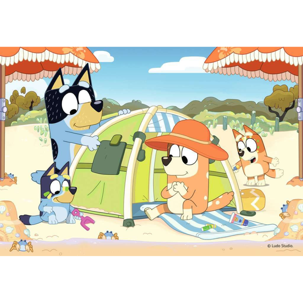 Sit back and relax with Bluey, Bingo, Bandit and Chilli before Bluey embarks on an exciting adventure at the beach!