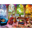 Celebrate the harmony of nature and music with this 100-piece extra-large jigsaw puzzle, featuring a stunning depiction of the four seasons through the beauty of sound. Each quadrant of the image represents spring, summer, autumn, and winter, intertwined with musical notes, instruments, and vibrant seasonal colours.
