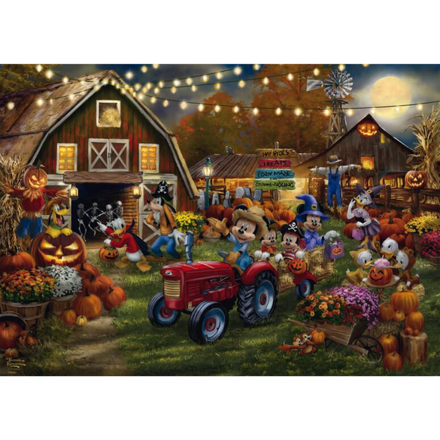Celebrate autumn with Mickey, Minnie, and friends at a cosy countryside pumpkin festival! This charming artwork from Thomas Kinkade Studios captures the warmth of harvest season, complete with glowing jack-o’-lanterns, twinkling lights, and Disney magic.