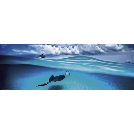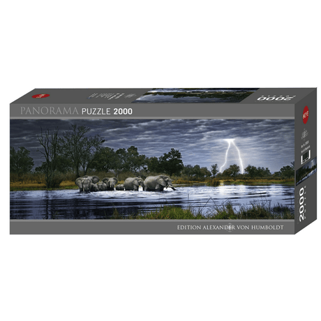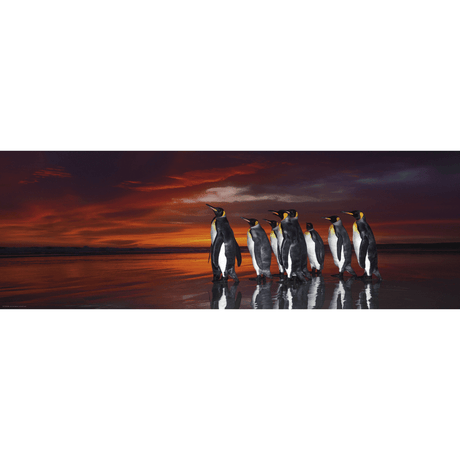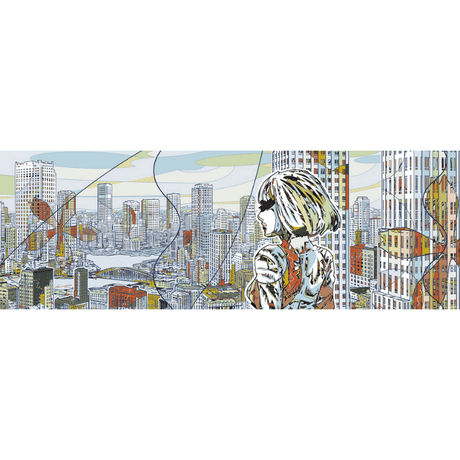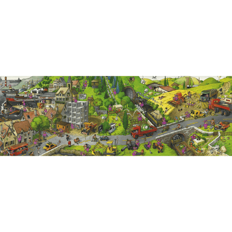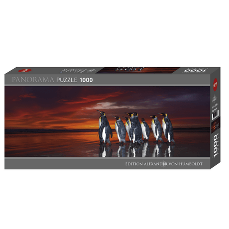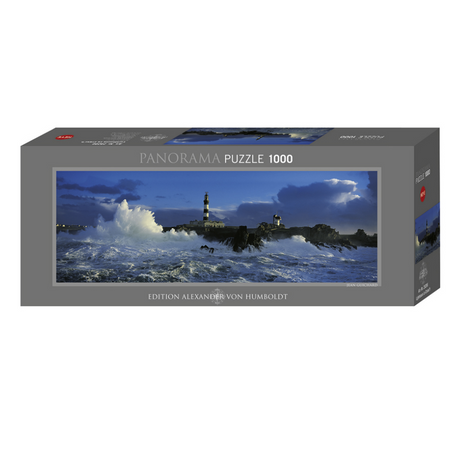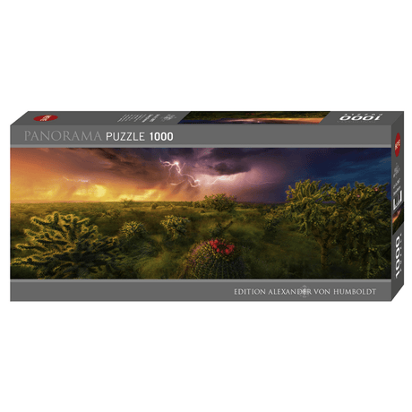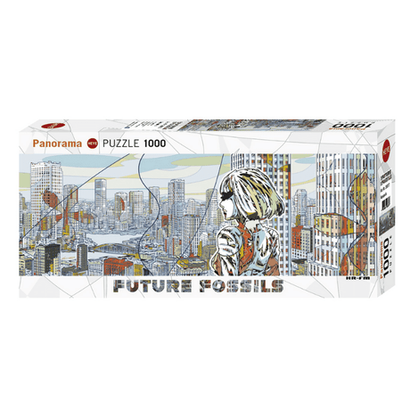 Wide-format puzzles showing extended scenes, often cityscapes or mountain ranges.