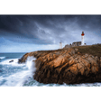 Features a breath-taking photographic image, brought to you by the photographer Christian Ringer, capturing a charming lighthouse above the cliffs and the rough seas below.