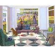 Kathryn Freeman applies her unique perspective to this iconic work of pointillism with a playful blending of modern and classic. Freeman credits Georges Seurat's A Sunday on La Grande Jatte as a major influence on her painting development, and it's an image she returns to repeatedly for inspiration. Elements of this much admired masterpiece seep into Freeman's modern living room filled with loyal dogs, coffee, and a long read of the weekly paper. Sunday, after all, is fun day.