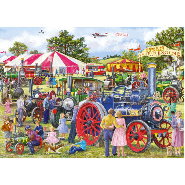 Steam Engine Rally is a quality 1000-piece jigsaw puzzle which is part of the Falcon Deluxe Nostalgia Collection.