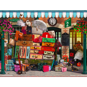 This fashion-conscious lady is off on the trip of a lifetime, and she's packed for every possible occasion! Is she doing "the grand tour", off on an ocean liner or going to a very swanky "house party" for the weekend? And surely she isn't taking the Siamese cat and cute Dachshund with her? Let your imagination run wild as you wonder who this lady is and where she's off to with all that luggage.