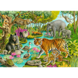Hang out with the exotic creatures inhabiting our "Animals of India" puzzle! The trees in this Indian forest are teeming with wildlife like golden langur monkeys, a leopard and a Lar gibbon! An Asiatic black bear, lion-tailed macaque, red panda and Asian elephants stay close to the fresh water, where a pair of Great Crested Grebe birds swim; can you spot their youngster? The Bengal tiger cub isn’t sure about that spotted green gecko!