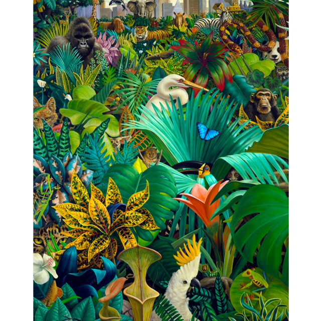 Charles Lynn “Chick” Bragg’s City Limits teems with flora and fauna while a crowded cityscape, a nuclear power plant, and a bulldozer loom on its horizon. Throughout his art career, his eclectic interests have been connected by a primal thread—environmentalism. This painting imparts that messages loud and clear, and makes for an excellent 1,000-piece puzzle.