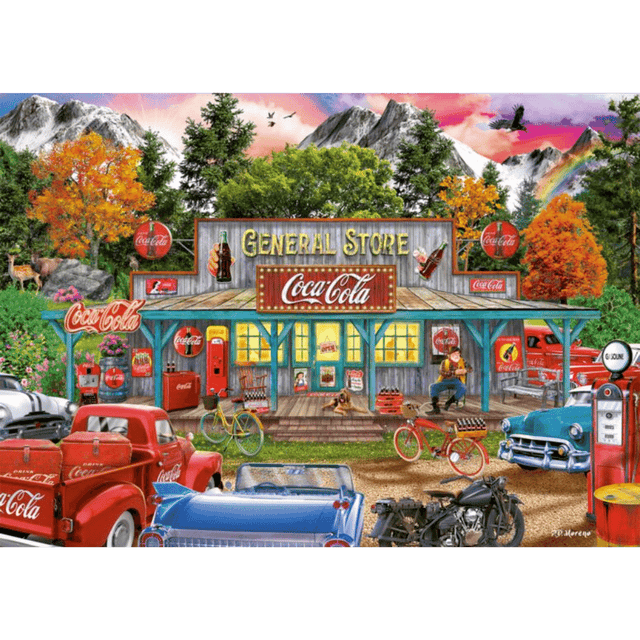 An iconic general store heavily sponsored by Coca Cola. This classic jigsaw is part of the iconic Coca Cola range.