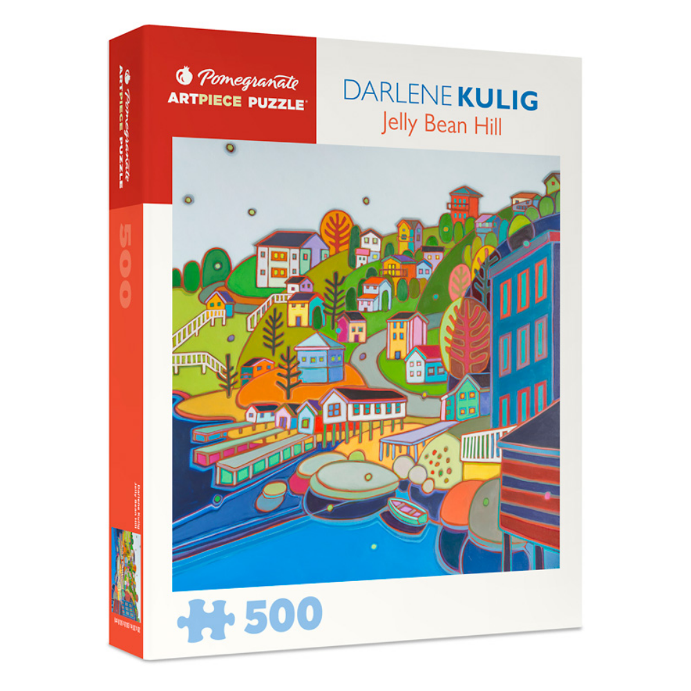 Who wouldn’t want to visit Jelly Bean Hill? As Darlene Kulig has envisioned it filled with inviting, colourful houses and deep blue waters, the setting presents the perfect opportunity for an uphill stroll. Kulig calls Toronto home but is an avid traveler. This painting was inspired by picturesque houses dotting a hillside in St. John’s, Newfoundland, and it resounds with her signature joyful exploration of light, rhythm, color, and the essence of place. You might have a hard time stepping away from working on this 500-piece puzzle.