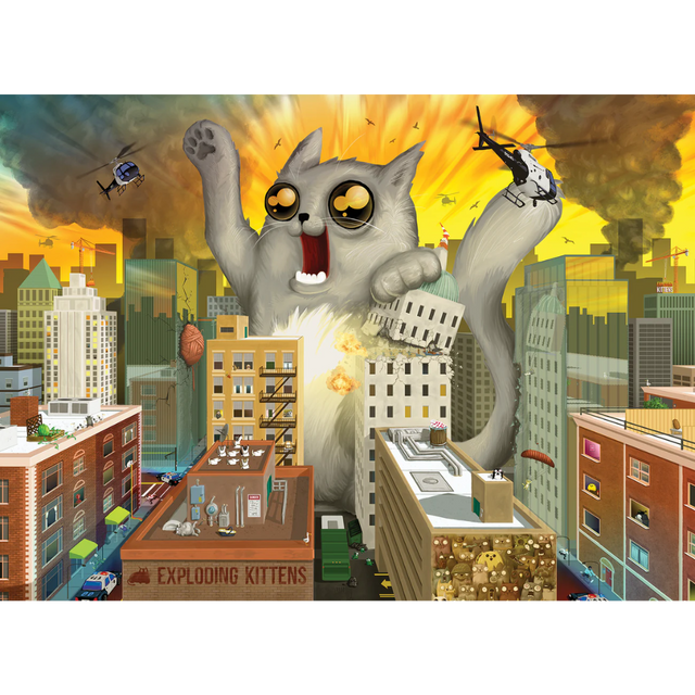 A typical concern of owning a normal-sized house cat is that it may knock over a keyboard or two. But when that kitty is the size of a city, the damage it's capable of can be a bit more… cataclysmic. Enjoy assembling this puzzle of adorable devastation, featuring plenty of Exploding Kittens Easter eggs.